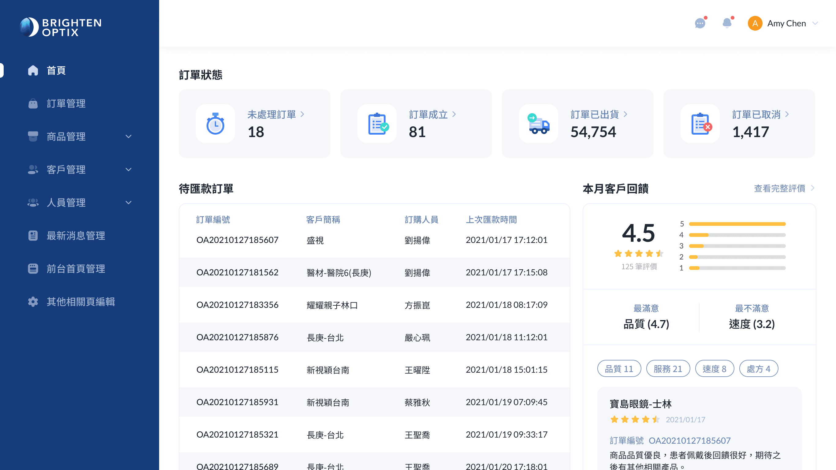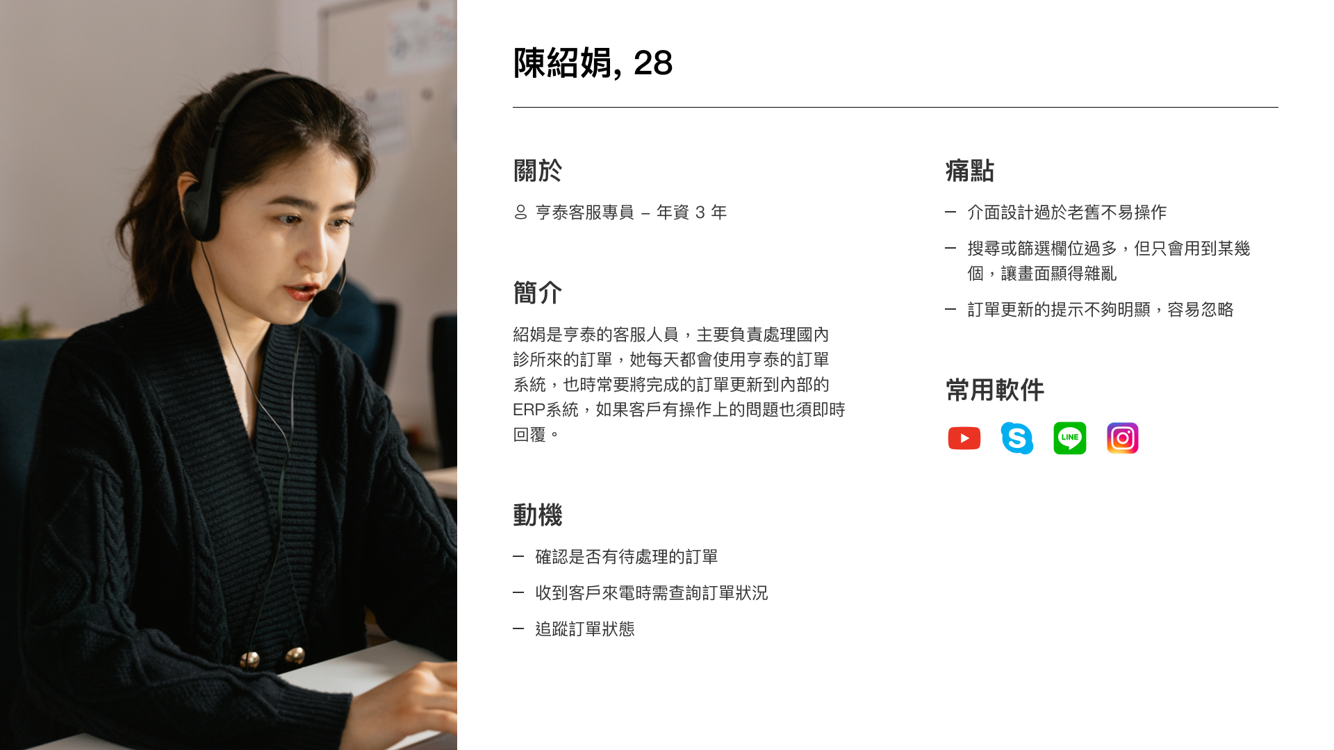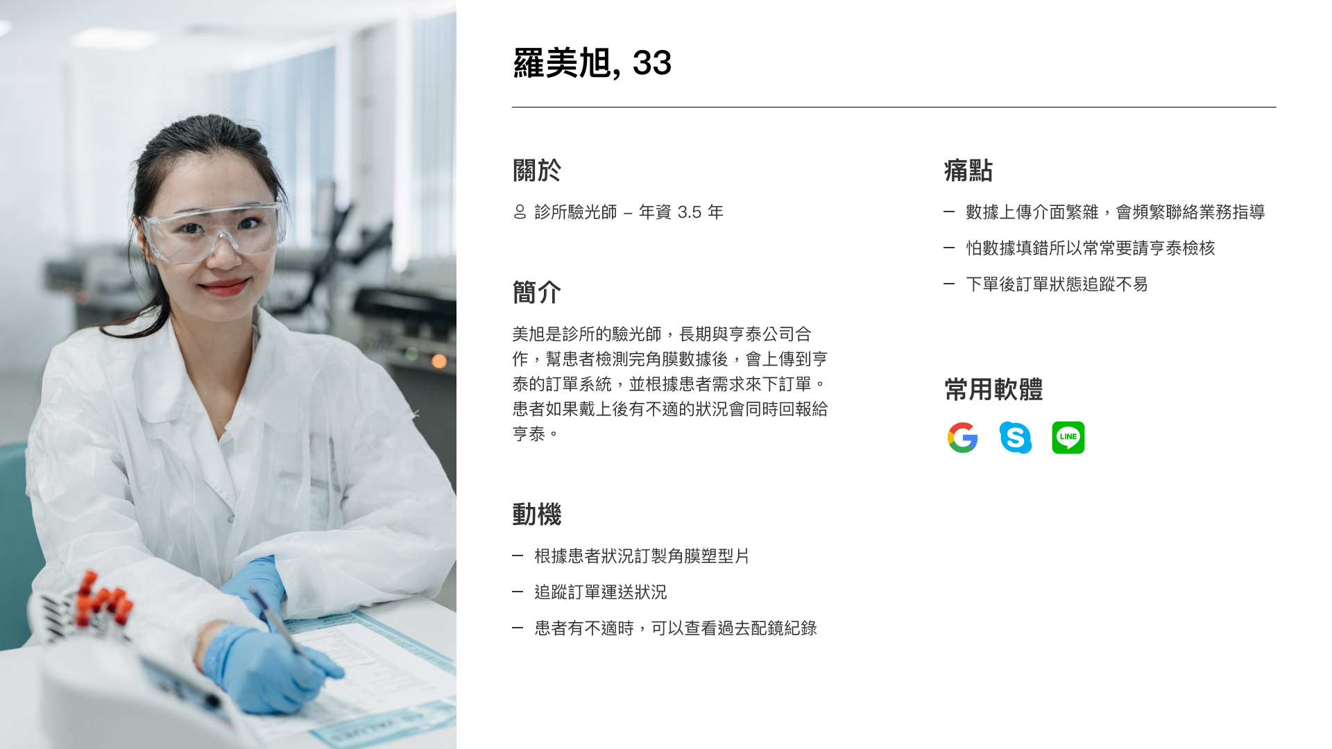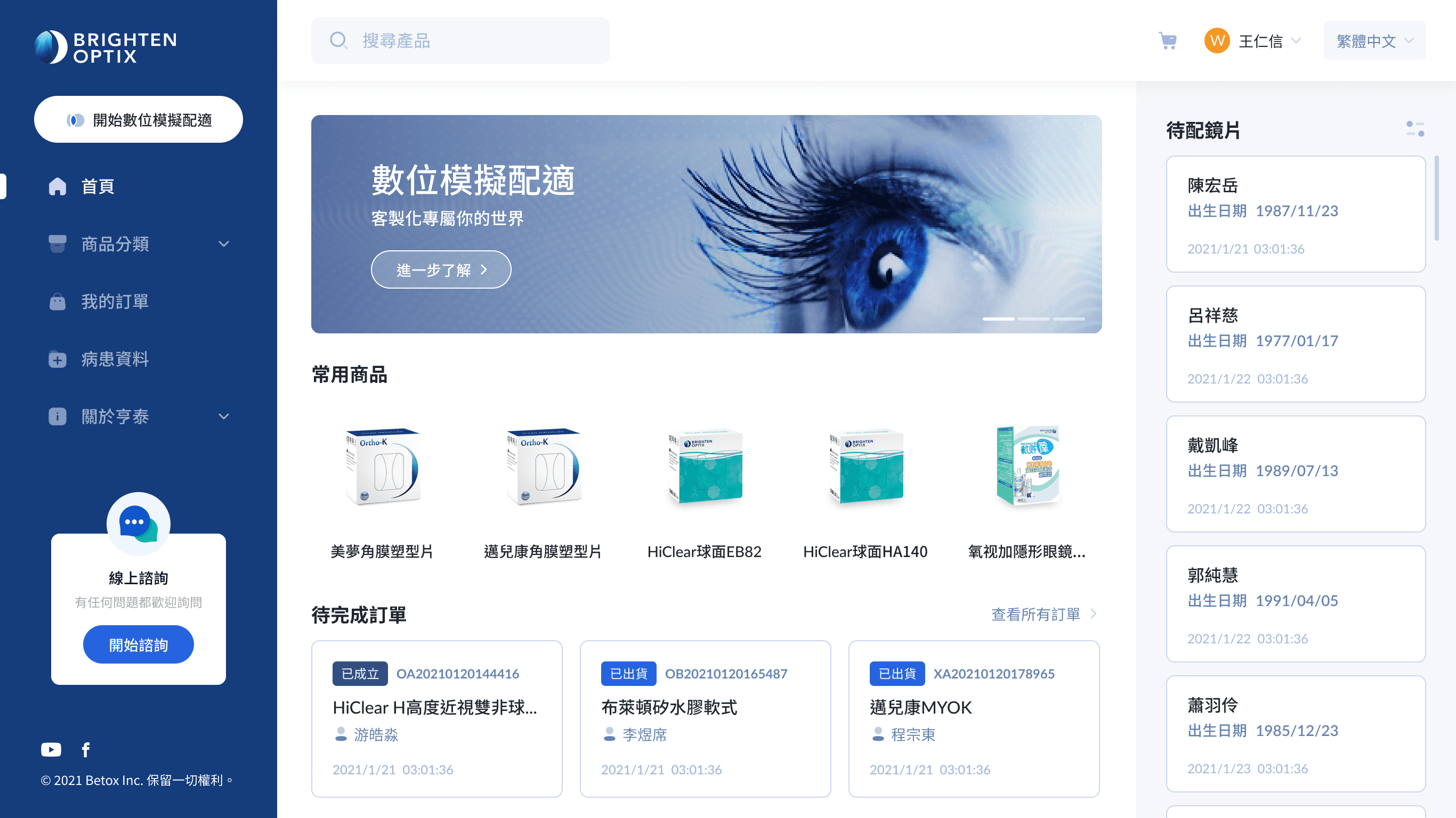 以亨泰光學內部客服人員的訂單整合需求、以及減少業務與醫生端的溝通成本來設計國內、外皆可共同使用的線上訂單系統。