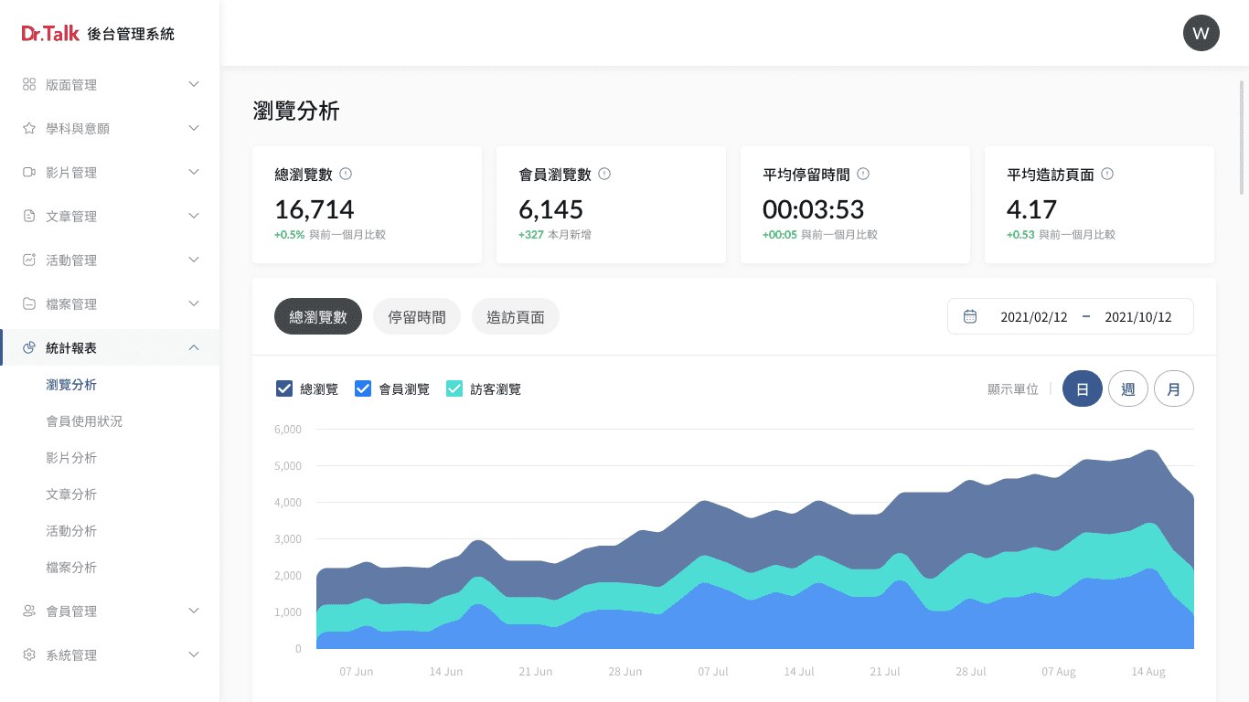 主要會以瀏覽分析、會員使用狀況、網站內容導向三大方向來設計。