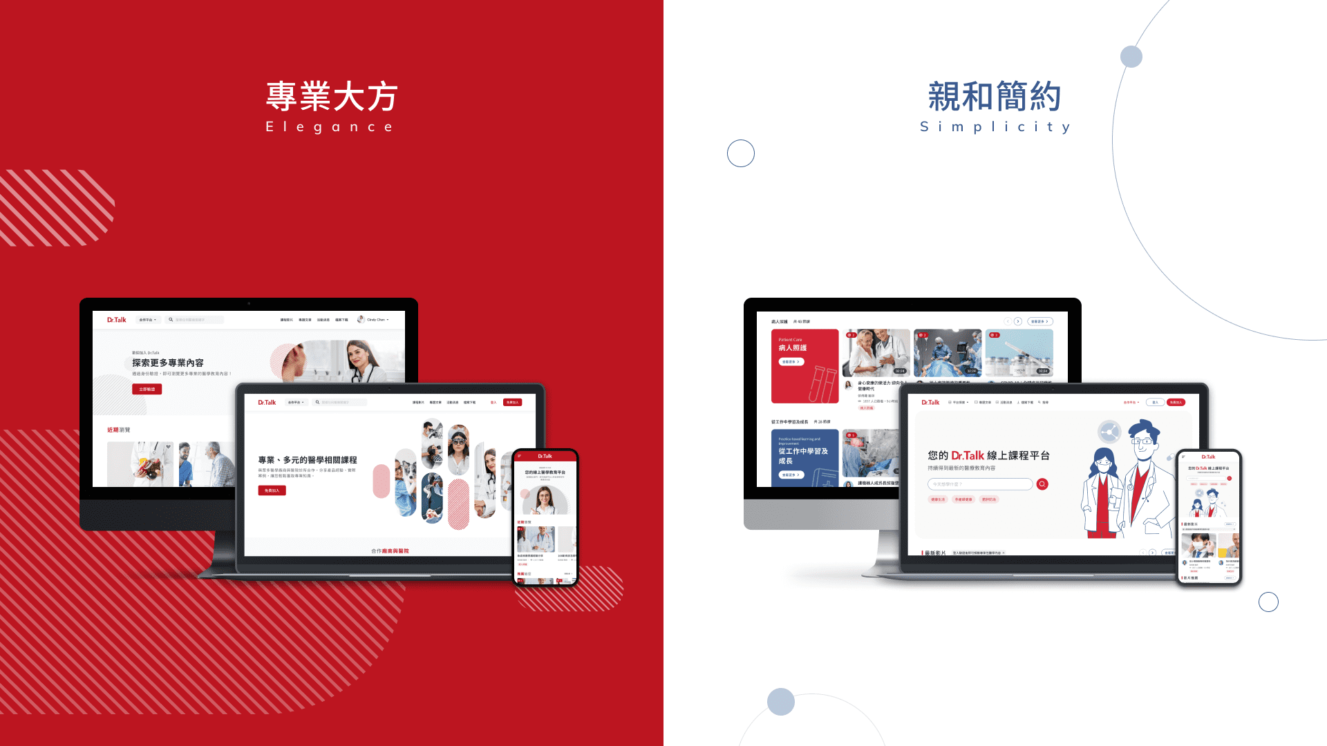 整體形象更加深了圓滑且平易近人的形象,透過插畫輔助減輕使用者在使用醫療平台上壓力的感受。配色添加對比藍色,整體更清新透明且無距離感。